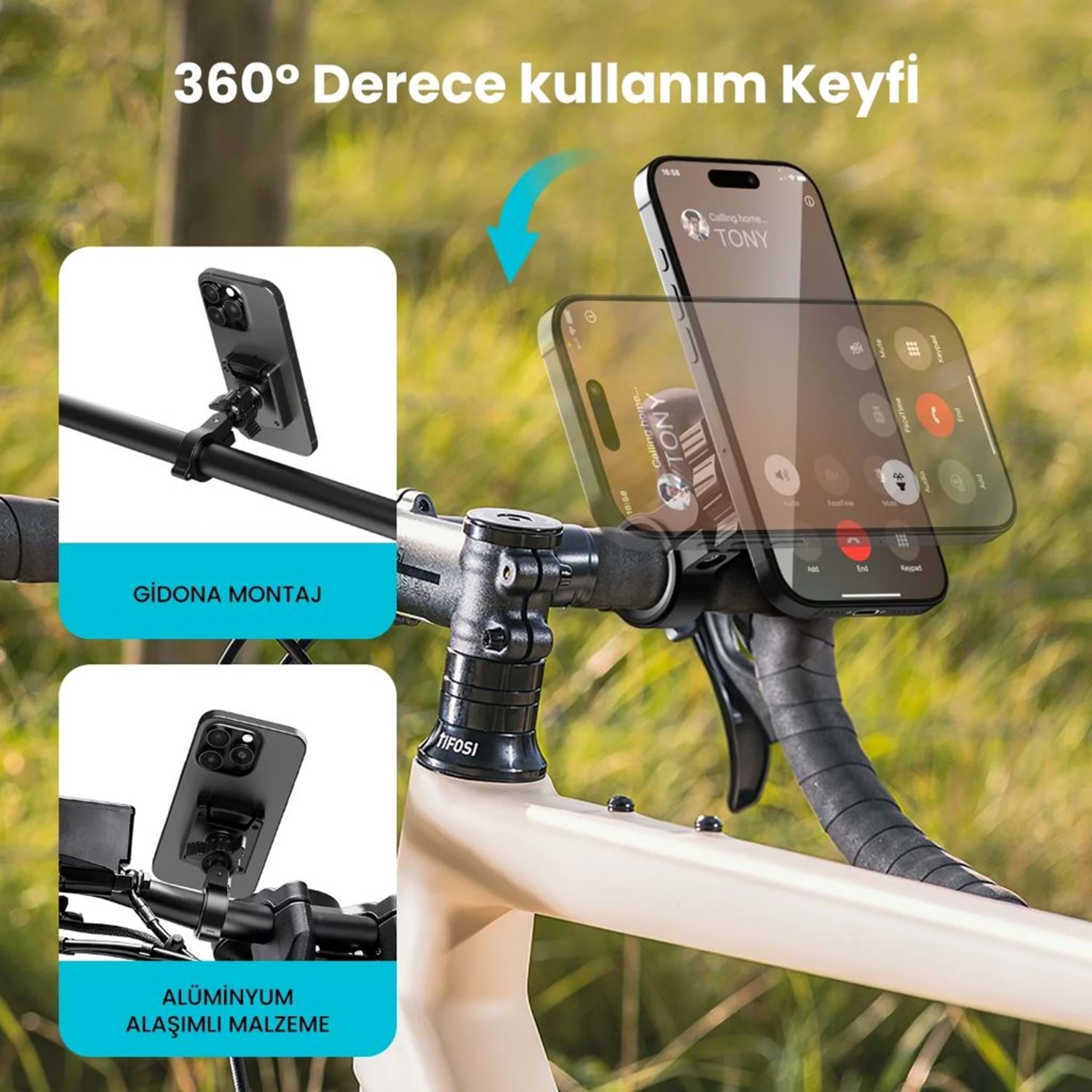 ?? Paket içeriği: Telefon tutucu, gidon aparatı, adaptörler, alyan anahtar